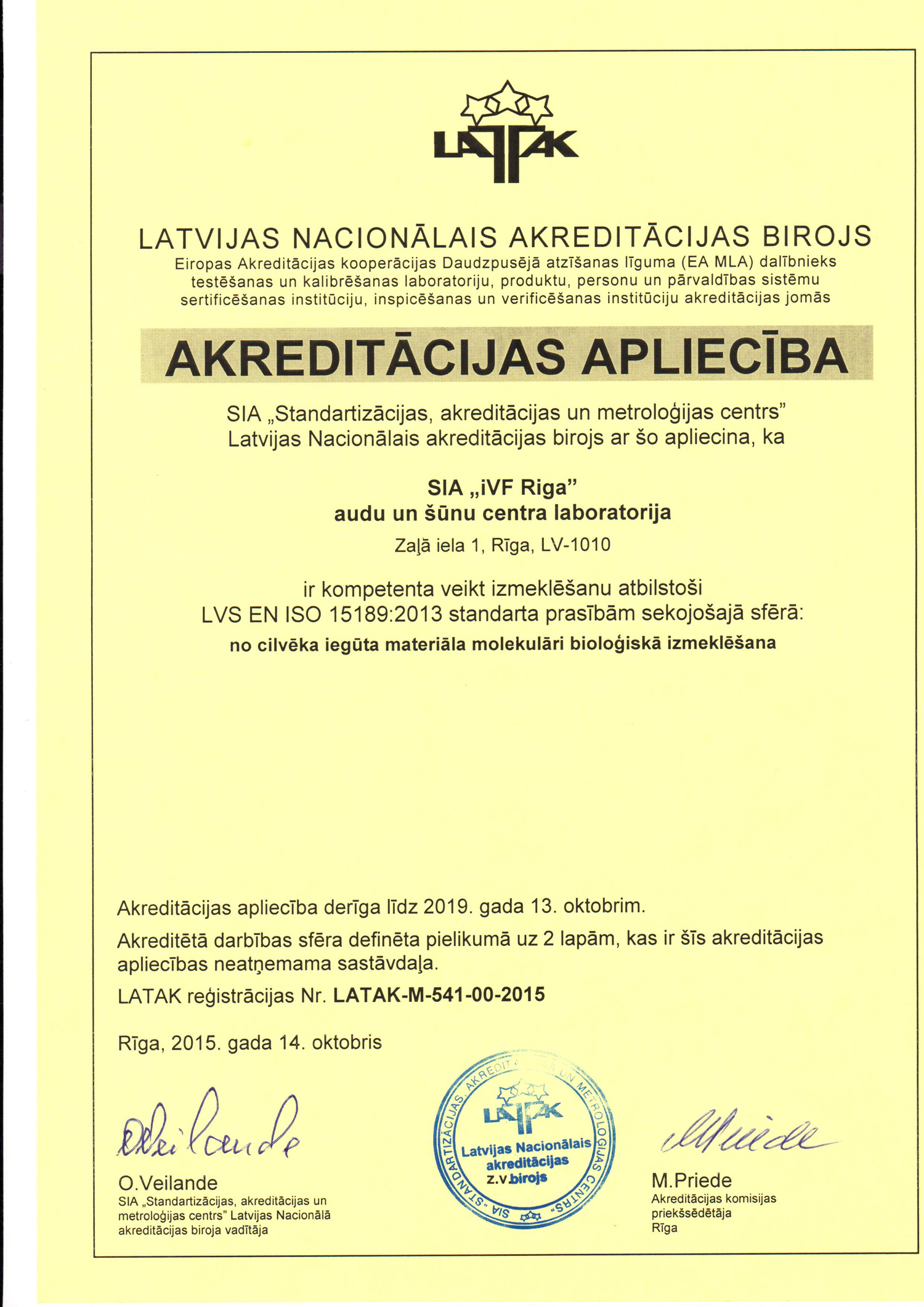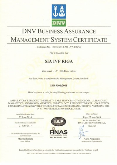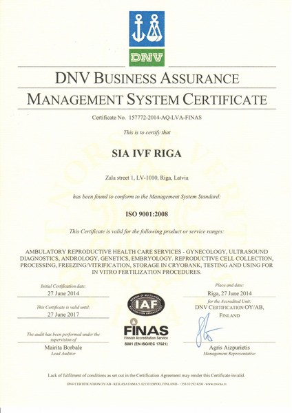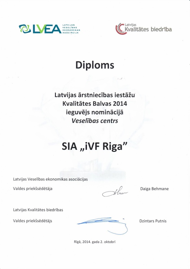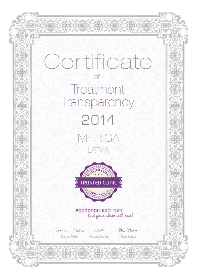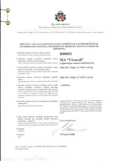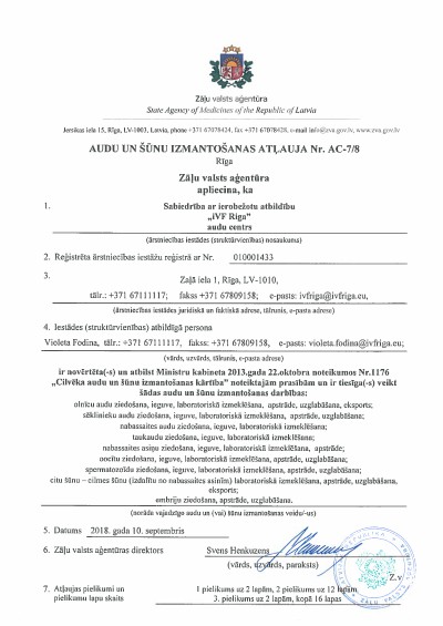 Mūsu veikto cilmes šūnu apstrādes procesu kvalitāti kontrolē Zāļu valsts aģentūra. ZVA piešķirtais sertifikāts apliecina, ka laboratorija ir novērtēta un iVF Riga Cilmes šūnu centram ir atļauja izdalīt un uzglabāt cilmes šūnas Latvijā. -
